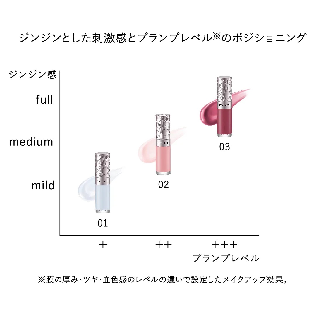※膜の厚み・ツヤ・血色感のレベルの違いで設定したメイクアップ効果。